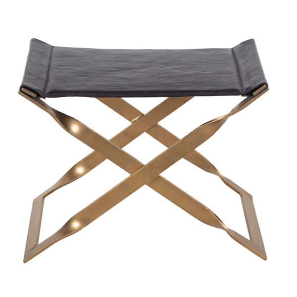 Kerrisdale Metal Cross Legs Leather Ottoman – Gold